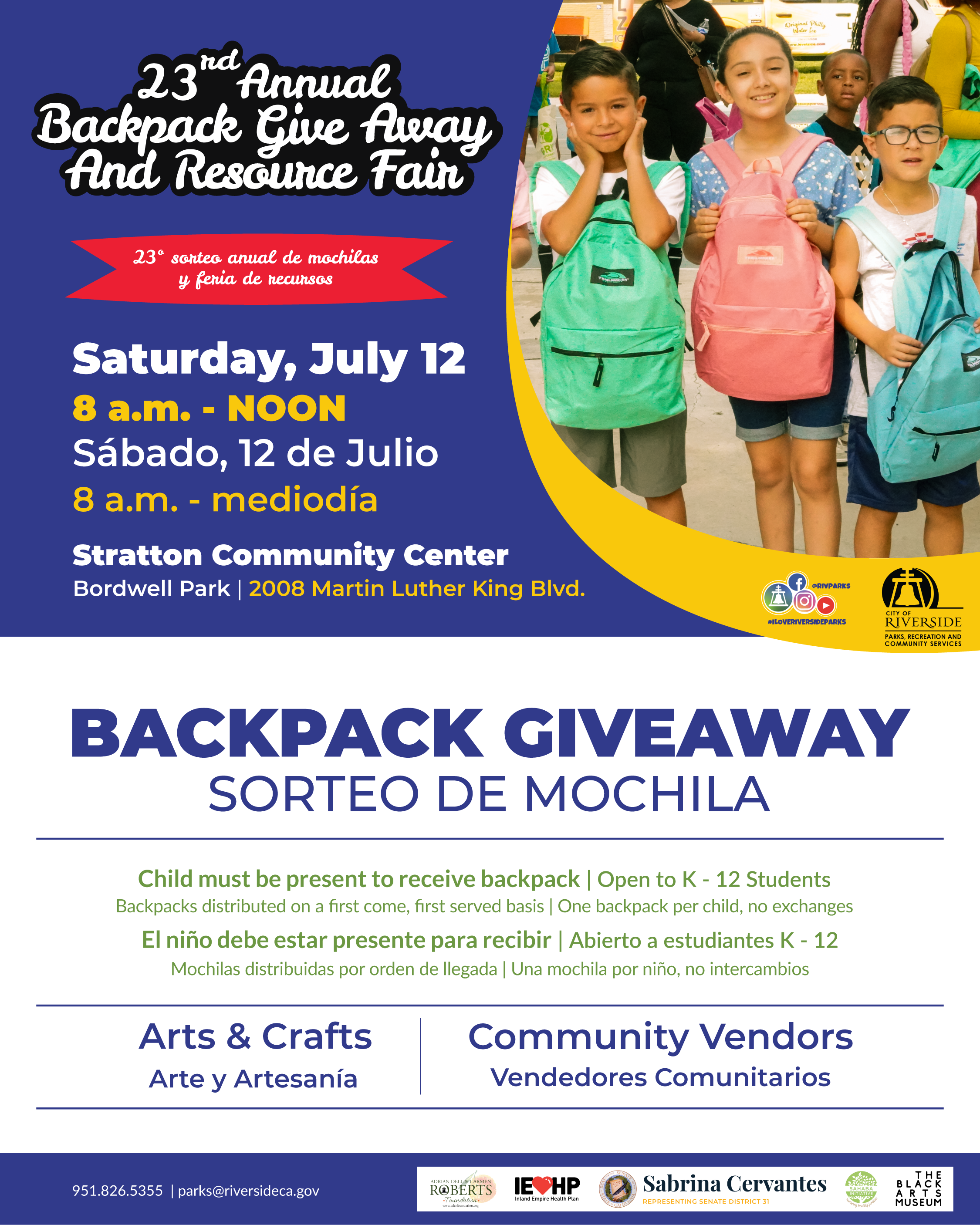 BAM helped sponsor this backpack giveaway hosted by the Roberts Foundation.