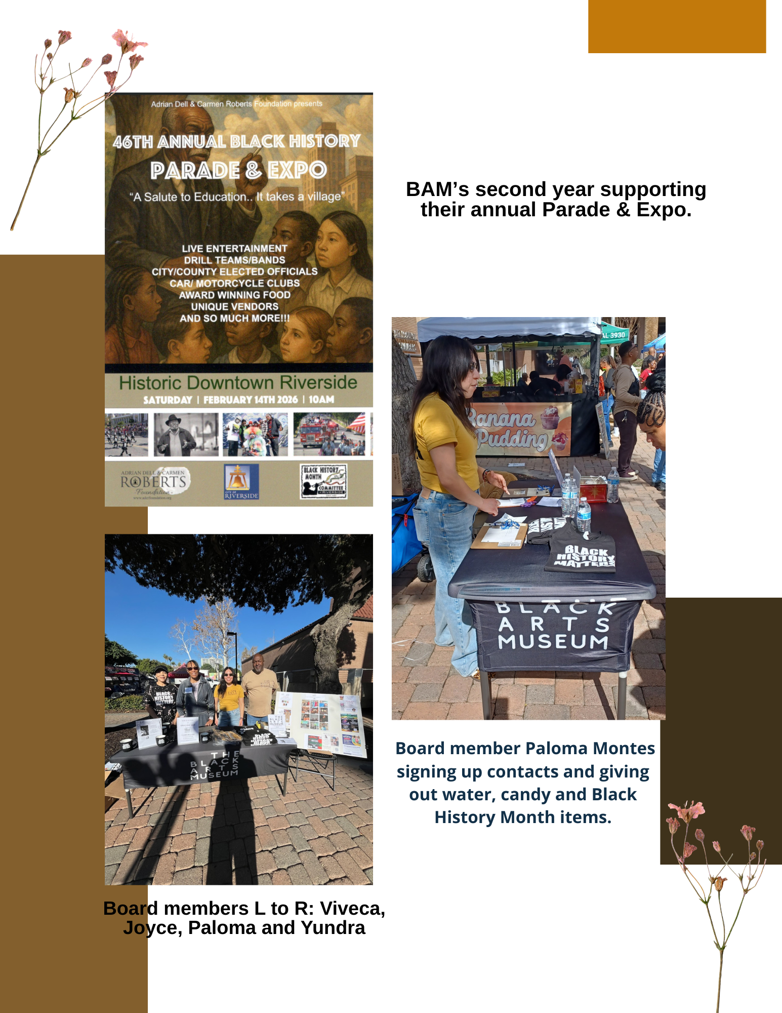 BAM was recognized as a community partner in the arts by AAFWAG. Provided art exhibit at event.