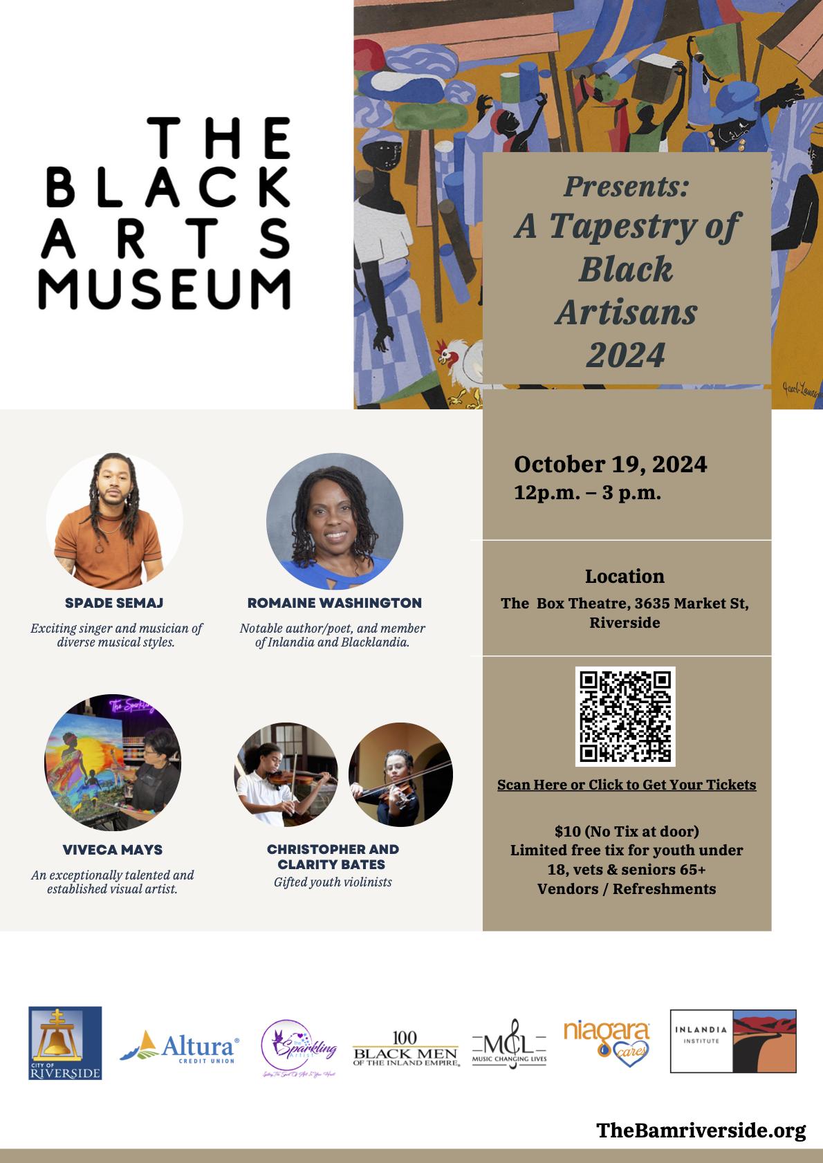 Begin your journey in the arts with The BAM at our inaugural “Tapestry of Black Artisans” on October 19, 2024.